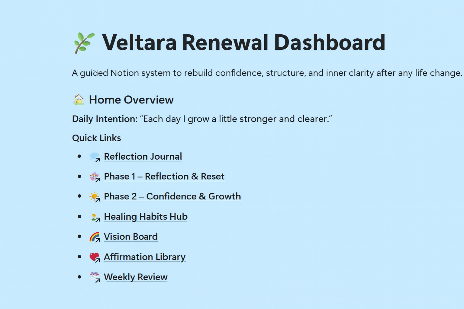 🌿The Veltara Renewal System | Guided Notion Dashboard for Healing, Clarity & Growth✨