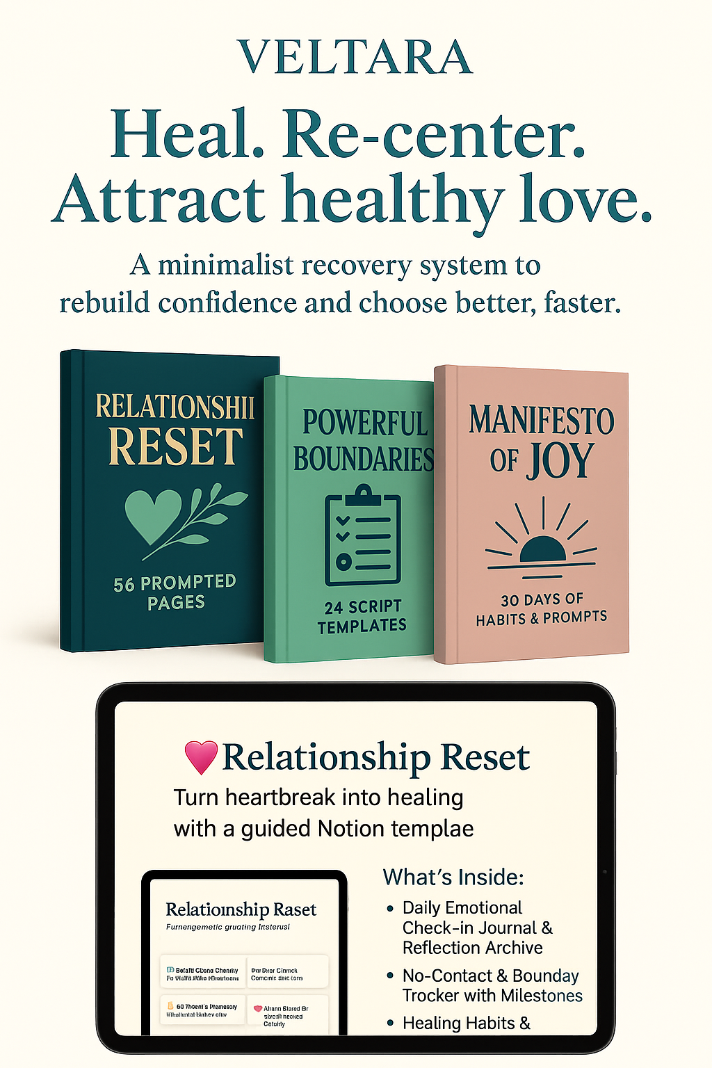 🌿 Relationship Reset Program – A 3-phase roadmap to release pain, rebuild confidence, and set new boundaries.